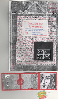 Papeles de oficina impresos (impresión directa, sellos de goma y xilografía), manuscritos, fotocopias, blister de medicamentos, etiqueta de saquito de mate cocido, sobrecito de "After eight", sobre calado de cuerdas de guitarra, tarjetita de "buscavidas" comprada en el ómnibus.